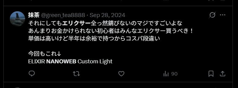 ・エリクサーを10年ずっと使い続けてる